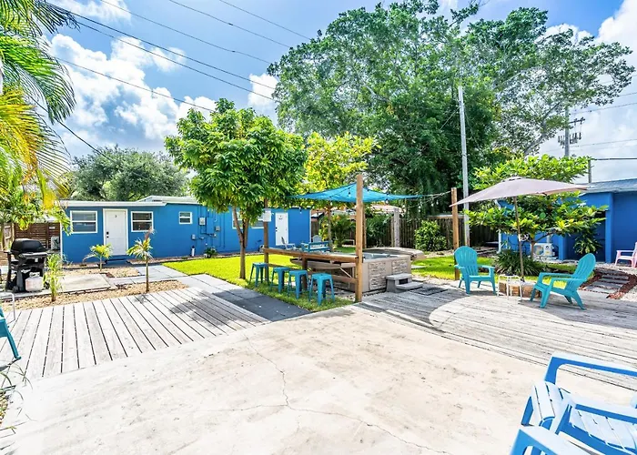 Det 4-stjärniga The Blue House Fort Lauderdale Airport/Cruise ligger inom 10 minuters bilresa från Fort Lauderdale–Hollywood International Airport och har utsikt över trädgården. Hotellet erbjuder en privat parkering på plats.